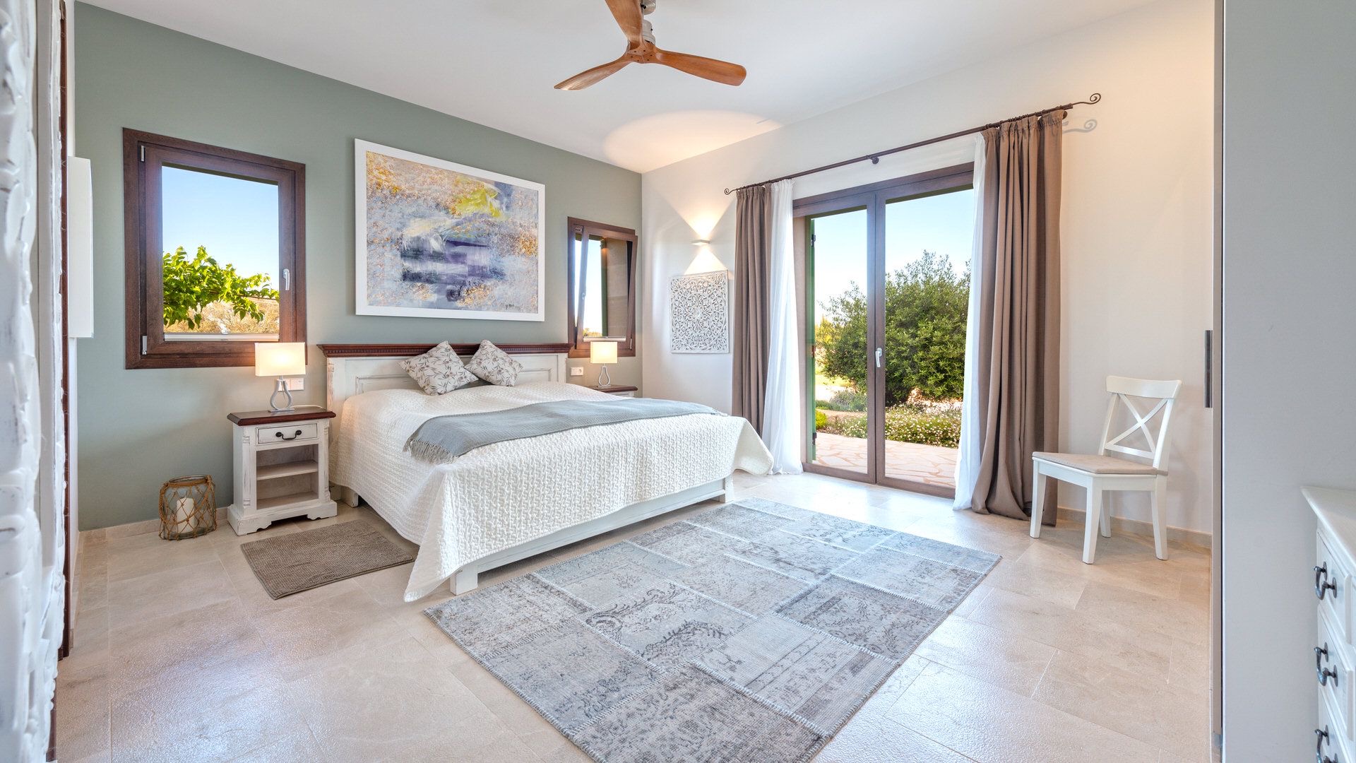 Küche, die zum Wohn- und Essbereich geöffnet ist. Im oberen Bereich der Finca befinden sich das Masterschlafzimmer