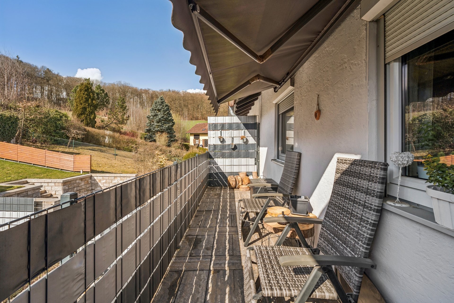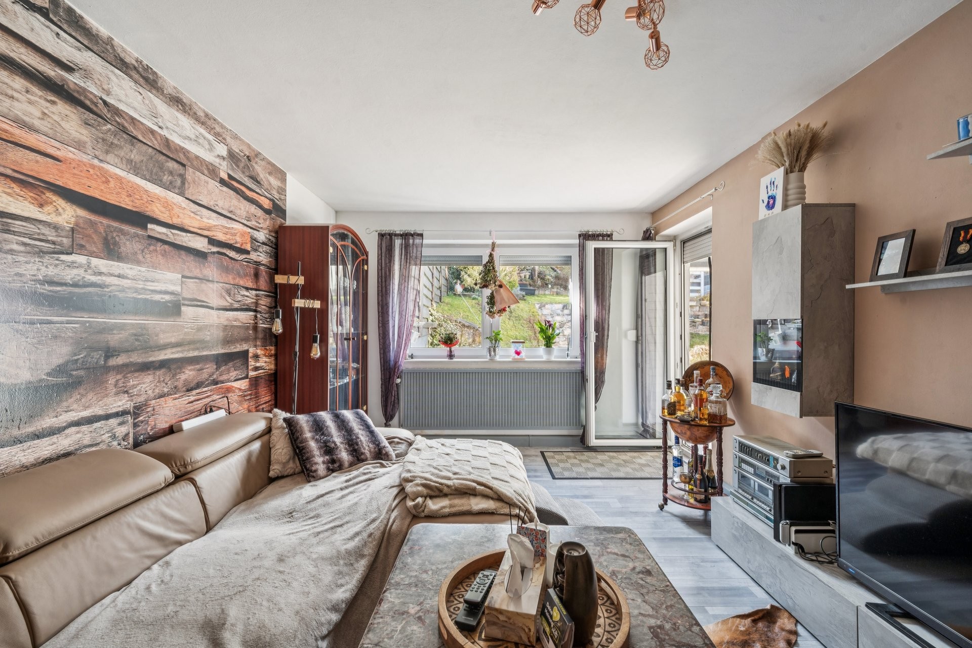Die Erdgeschosswohnung bietet einen funktionalen und wohnlichen Grundriss mit direktem Zugang in den Außenbereich.