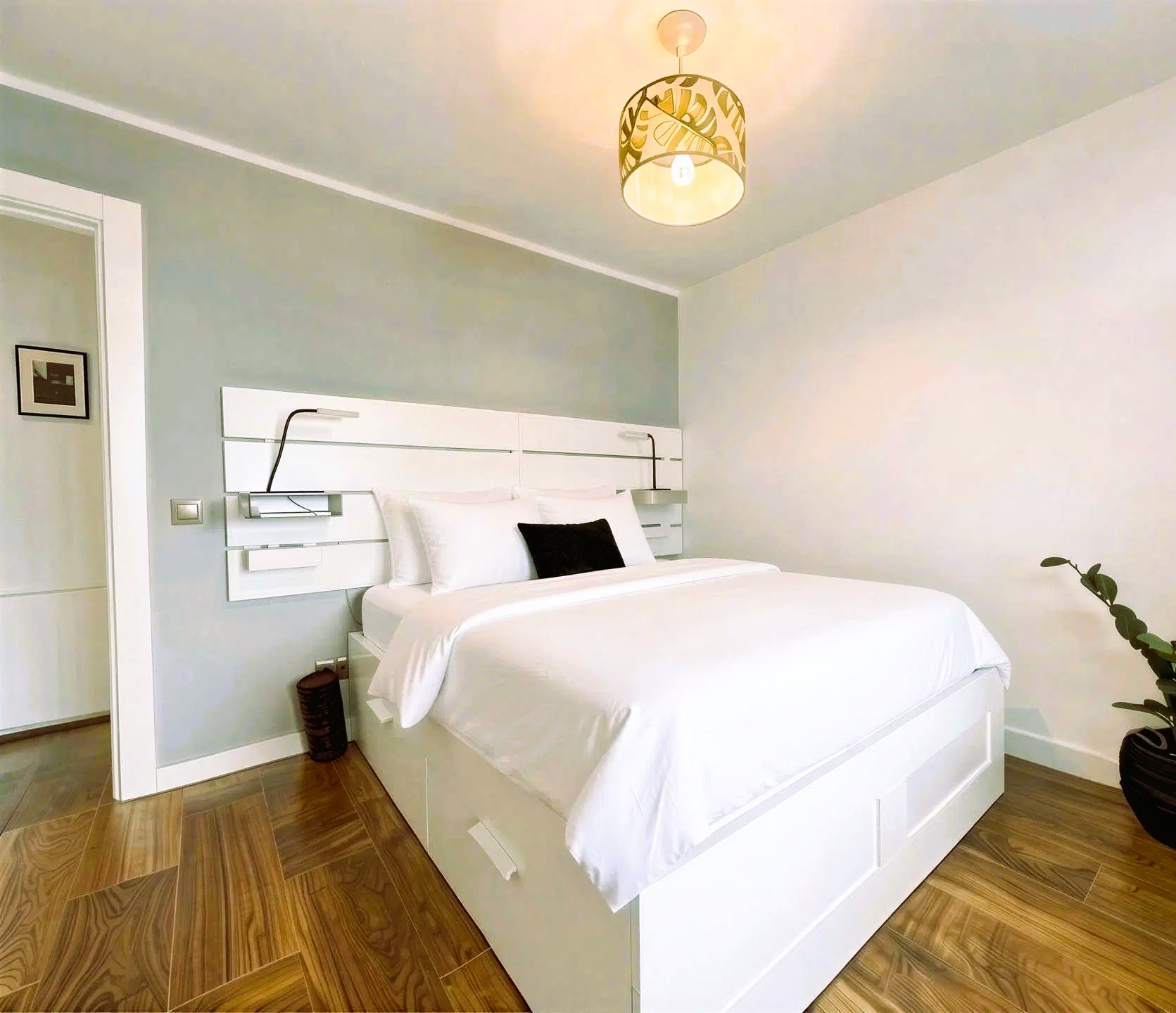 Das Master-Schlafzimmer bietet ebenfalls einen traumhaften Blick auf das Wasser. Ergänzt wird die Wohnung durch ein kleines Gäste- oder Arbeitszimmer sowie ein stilvolles Badezimmer.